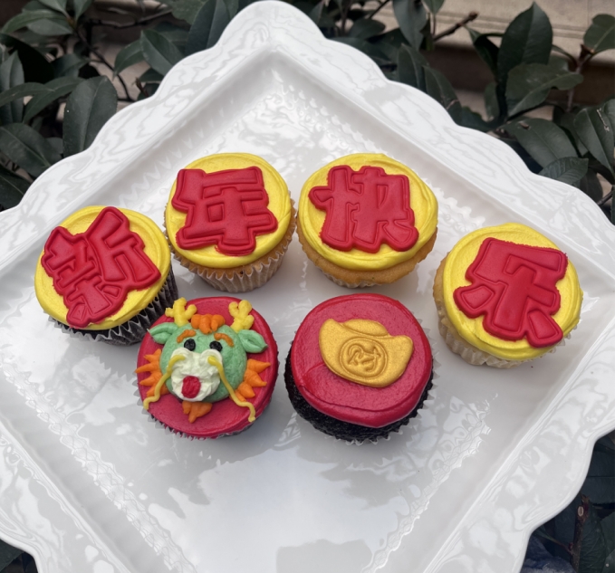 Celebrate Chinese New Year in Shanghai with festive cupcakes. Six chocolate and six vanilla cupcakes festively decorated to celebrate the lunar new year. Available through Chinese New Year.